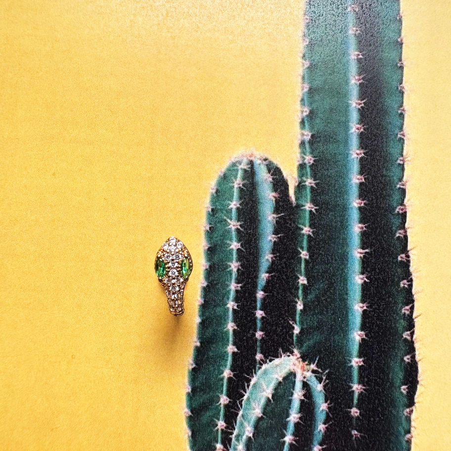 symbole de renaissance et de protection, le serpent se réinvente ici dans une version épurée et lumineuse, alliant force et sensualité.